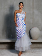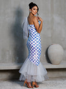 Vestido de baile de formatura em malha com lantejoulas xadrez RH308018