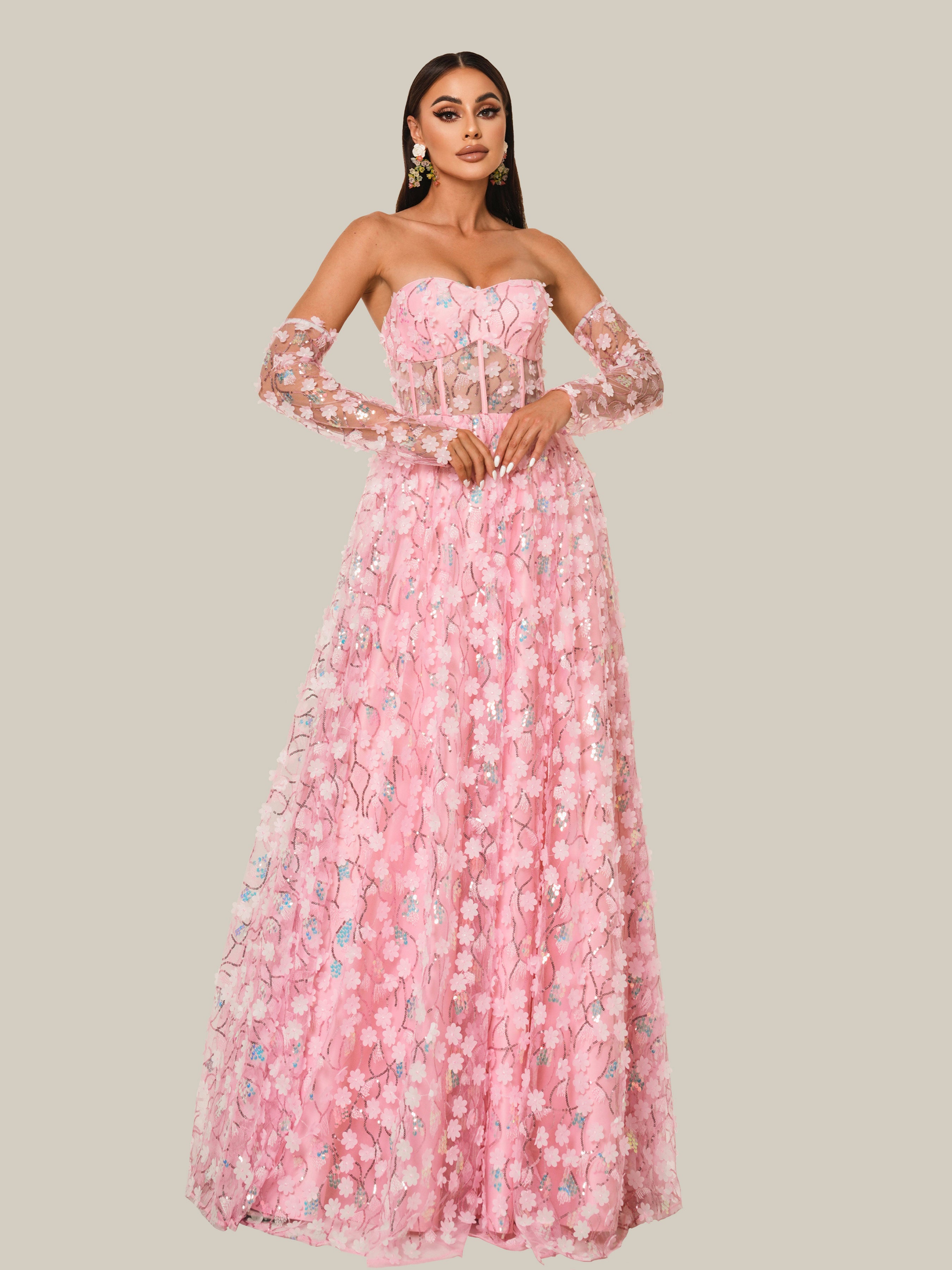 Encante-se com a beleza do nosso Vestido A-line Sem Alças com Apliques Florais! Este deslumbrante vestido apresenta apliques florais intricados que adicionam um toque de elegância ao clássico design A-line sem alças. Perfeito para qualquer ocasião, este vestido fará você se sentir confiante e estilosa. Prepare-se para chamar a atenção!