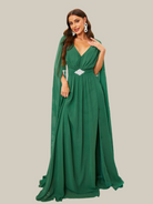 • Detalhes: Decote em V, Chiffon, Maxi, A-Line