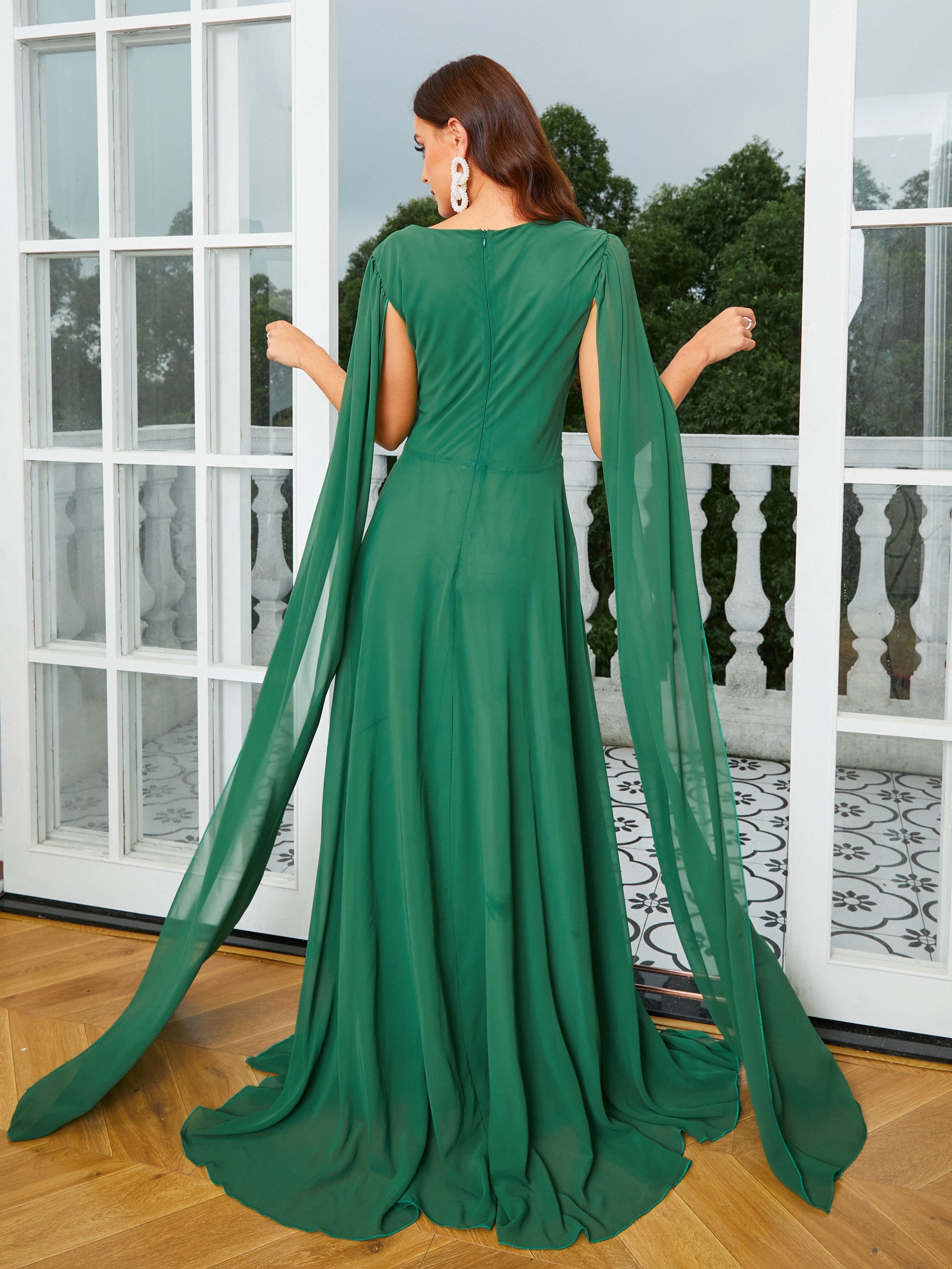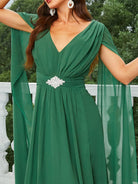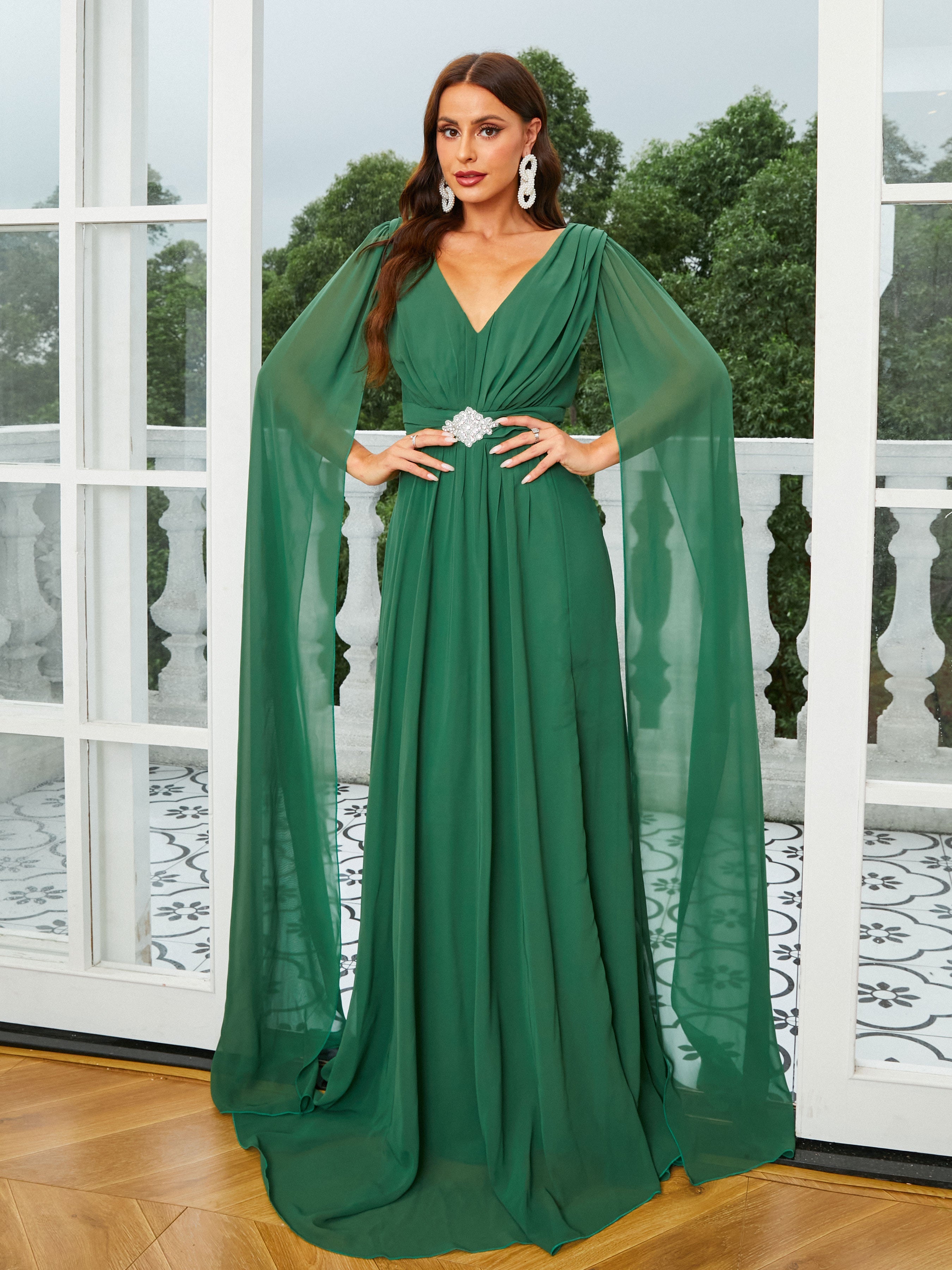 Seja o assunto da festa de casamento com esse jovial vestido de dama de honra formal em chiffon verde com corte em A! O tecido fluido de chiffon drapeja lindamente, enquanto a manga longa acrescenta um toque de elegância. Perfeito para qualquer ocasião formal, esse vestido fará com que você se sinta confiante e elegante a noite toda.