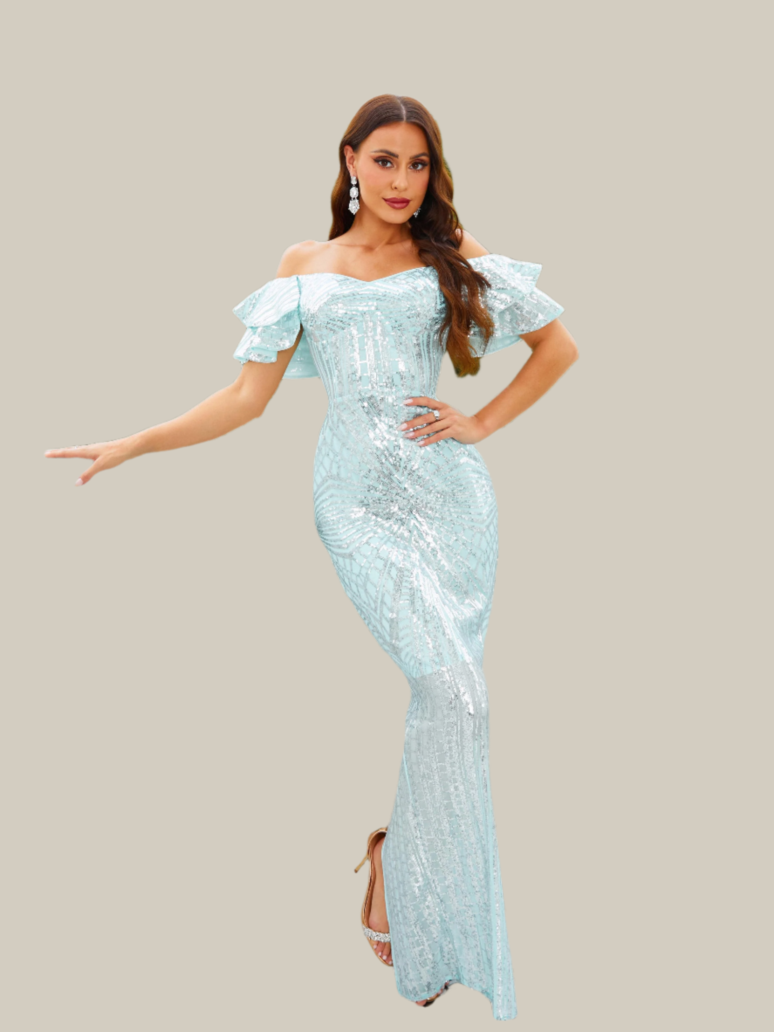 Fique linda em sua próxima ocasião especial com esse vestido de baile com lantejoulas Graphic Sweetheart Off The Shoulder. Dê o toque final em seu visual com um padrão de lantejoulas para um brilho e cintilação excepcionais. Confeccionado em tecido de luxo, ele foi projetado para favorecer sua silhueta e causar uma impressão duradoura.