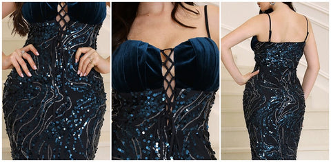 Pareça uma verdadeira sereia cintilante com este vestido de baile de lantejoulas maxi sereia azul com renda! Exiba os seus movimentos, mostre-lhes o que vale, com o padrão gráfico lisonjeiro, os detalhes dos painéis e as lantejoulas cintilantes. A escolha perfeita para uma noite inesquecível! Por isso, vamos lá - amarre os cordões e comece a diversão!