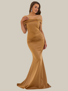 Este vestido de noite marrom Off Shoulder Mermaid apresenta uma silhueta elegante para eventos noturnos formais. Confeccionado em cetim, ele envolve elegantemente suas curvas com um design sem mangas e decote sem ombros para sofisticação.