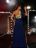Este vestido de dama de honor de chiffon azul de um ombro é o complemento perfeito para qualquer cerimónia de casamento. O seu estilo de um ombro só e o luxuoso tecido de chiffon darão um ar requintado às suas damas de honor. A sua rica cor azul e o seu design clássico ajudarão a criar um look intemporal no dia do casamento.