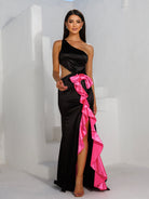 Eleve seu guarda-roupa com nosso deslumbrante vestido de cetim de um ombro só com babados! Feito de cetim de alta qualidade, esse vestido apresenta um design elegante de um ombro só e uma lisonjeira fenda com babados. Perfeito para qualquer ocasião, esse vestido fará com que você se sinta confiante e chique. Adicione-o à sua coleção hoje mesmo!