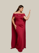 Vestido para convidada de casamento vermelho com recorte de manga de capa plus size PRJ10959