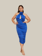 Esse vestido de coquetel azul Plus Size Halter Appliqued Cutout foi criado para valorizar suas curvas. Com decote halter, detalhes de recortes divertidos e detalhes com apliques, esse vestido certamente fará com que você se destaque em seu próximo evento.