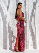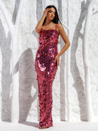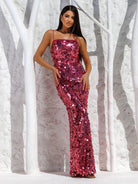 Brilhe e se destaque com nosso vestido de lantejoulas com alça espaguete e fenda nas costas! Com suas lantejoulas cintilantes e a atraente fenda nas costas, esse vestido certamente chamará a atenção. Perfeito para sair à noite ou para uma ocasião especial. Prepare-se para deslumbrar!