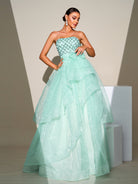 Desfrute da elegância atemporal do nosso Vestido de Festa Sem Alças com Camadas em Tule e Amarração nas Costas. Com sua silhueta de princesa e delicado design em tule com camadas, este vestido fará você se sentir uma verdadeira realeza. O detalhe de amarração nas costas adiciona um toque de sensualidade, tornando-o a escolha perfeita para qualquer ocasião especial.