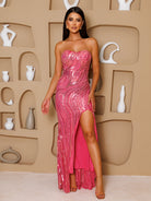 Chame a atenção com o nosso vestido de lantejoulas com decote tubinho e fenda alta! Esse vestido deslumbrante apresenta um design lisonjeiro de top tubular e uma fenda alta para maior dramaticidade. Perfeito para sair à noite, esse vestido fará de você a estrela do show.