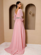 Seja a melhor dama de honra em nosso vestido rosa com mangas recortadas em tule e cinto. O material de tule dá ao vestido um toque macio e sonhador, enquanto as mangas recortadas e a cintura com cinto dão um toque de ousadia. Perfeito para o grande dia de sua melhor amiga!