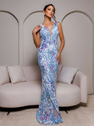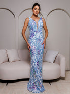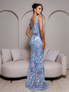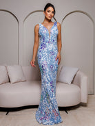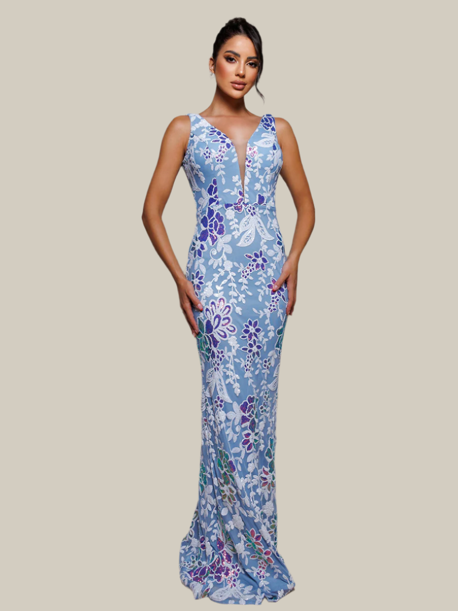 Fique deslumbrante com o nosso Maxi Dress de Lantejoulas Florais Azuis com decote em V! Esse vestido exclusivo apresenta um belo design floral adornado com lantejoulas chamativas para dar um toque de brilho. Perfeito para qualquer ocasião especial, esse vestido fará com que você se destaque e se sinta fabulosa! (Aviso: pode causar excesso de elogios!)