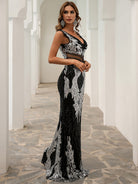 Este vestido de noite apresenta um painel de malha contrastante, recortes, strass e um fecho de zíper, juntamente com um design sem mangas feito de um tecido com leve elasticidade.
