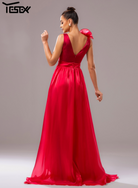 Este deslumbrante vestido, com alças foi criado para você se destacar em qualquer ocasião especial, feito de material acetinado de alta qualidade, esse vestido elevará o seu estilo e fara você brilhar como uma estrela.