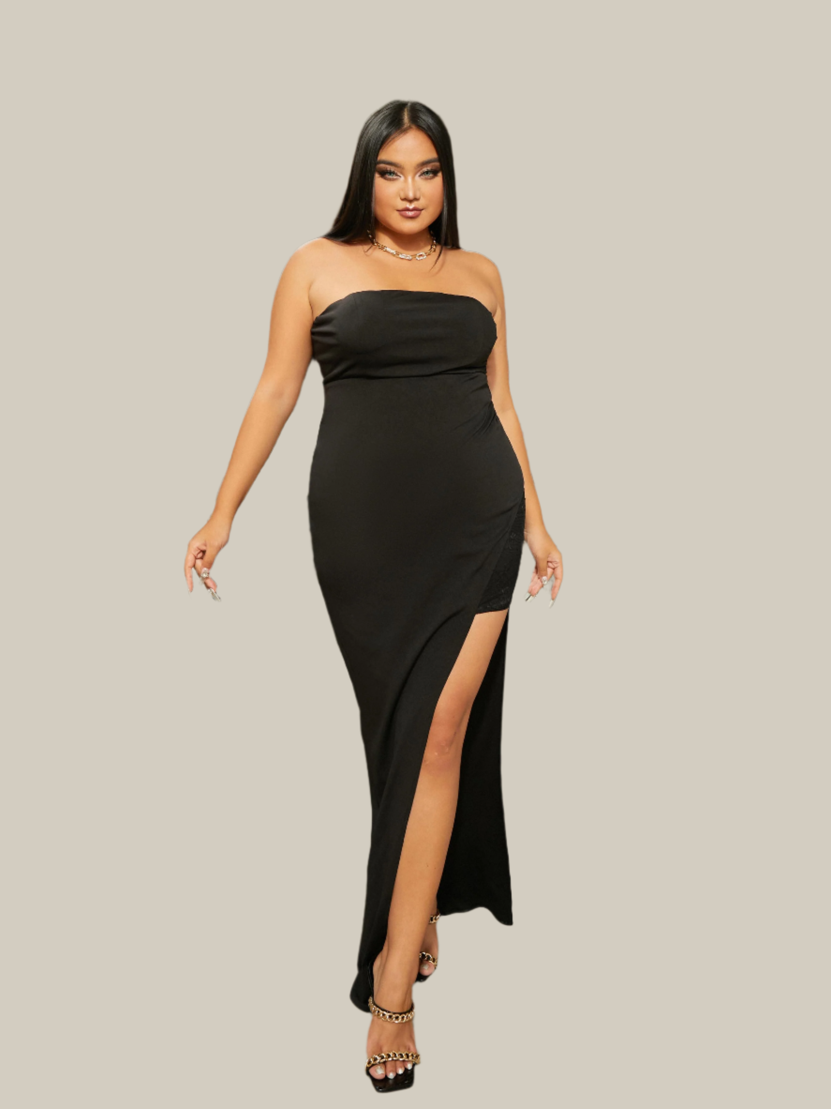 Eleve seu estilo com nosso vestido de baile preto Plus Size Tube Top sem mangas e com fenda alta PRJ10328. Projetado para favorecer todos os tipos de corpo, esse vestido apresenta uma blusa tubinho e um design sem mangas, além de uma fenda alta para dar um toque de elegância. Perfeito para bailes de formatura, casamentos e outras ocasiões especiais.