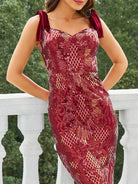 Fique no seu melhor com este deslumbrante vestido formal vermelho! Este vestido maxi sem mangas e sem costas apresenta lindos detalhes de lantejoulas com cordões. Perfeito para um look formal ou para ocasiões especiais, este vestido vai virar cabeças!