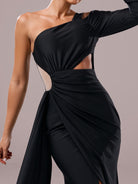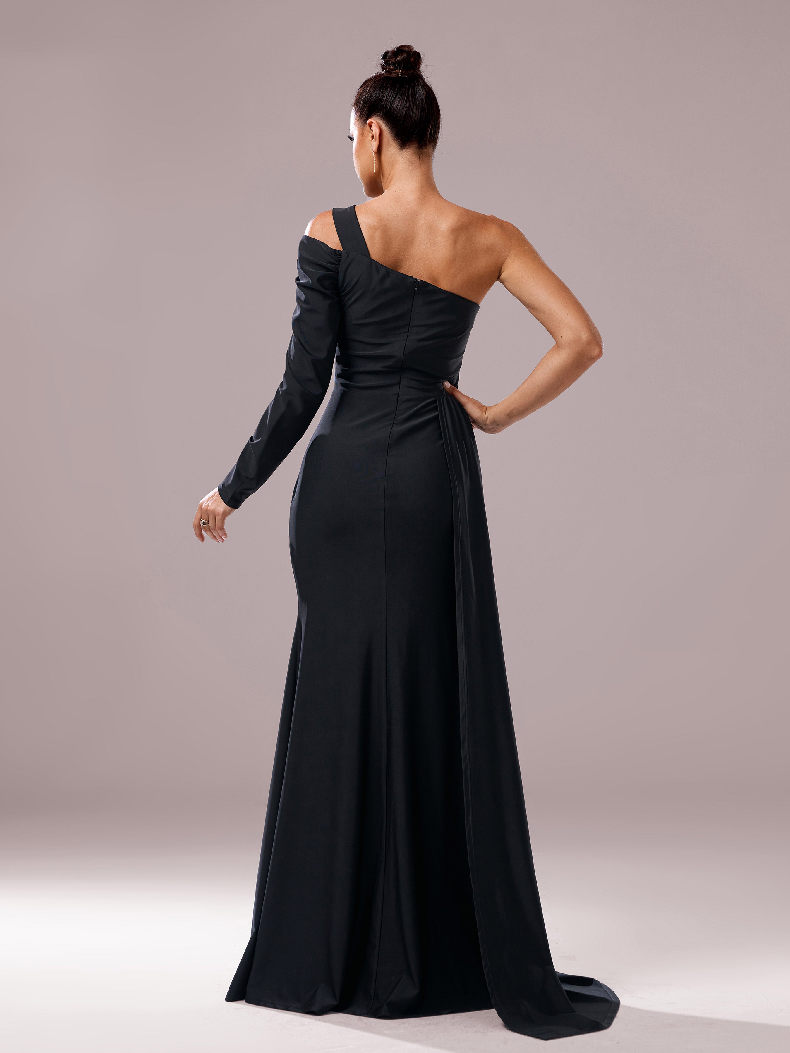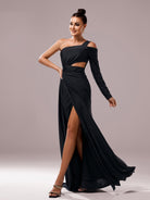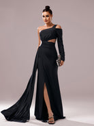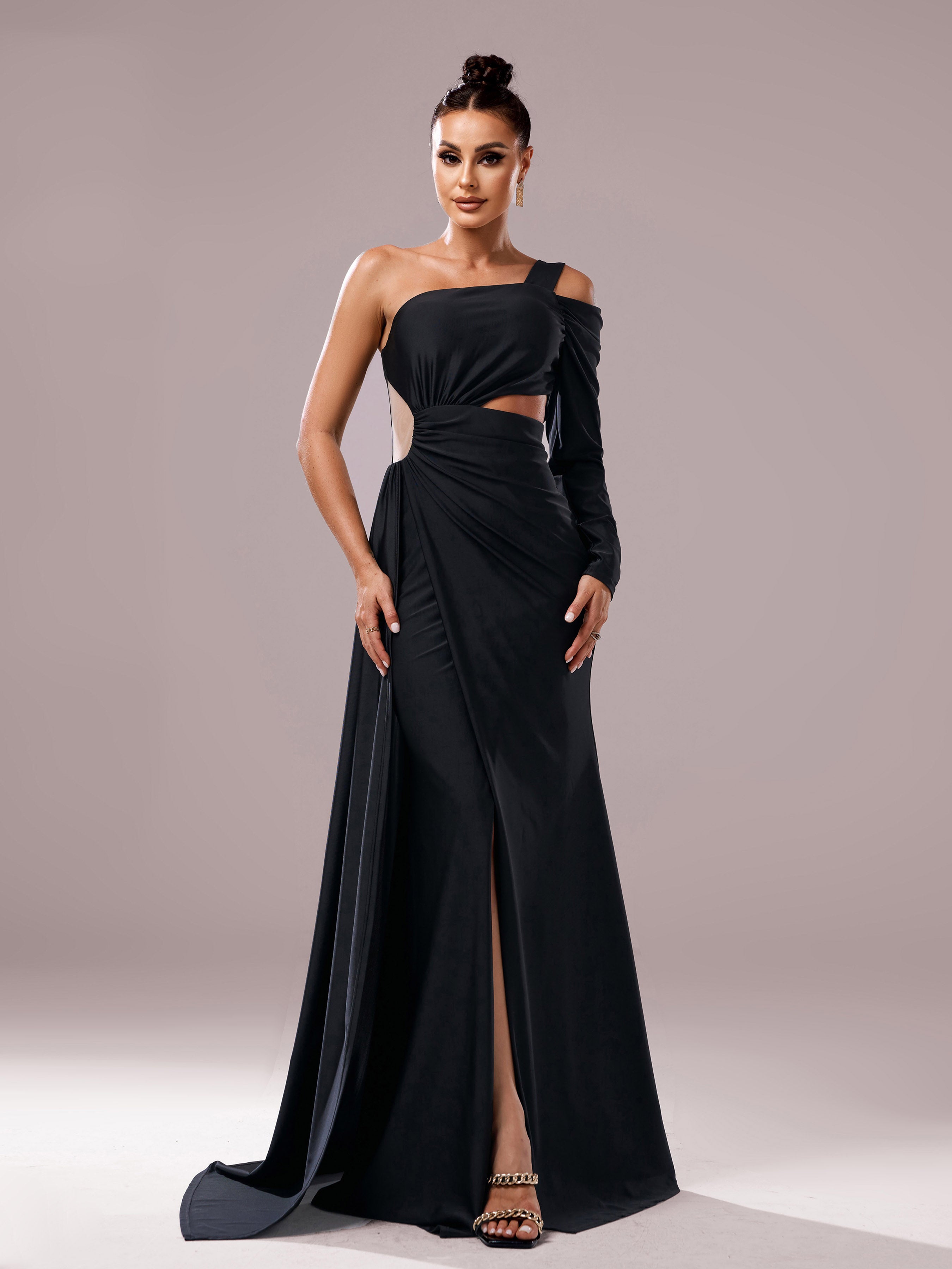 Vestido de festa com fenda vazada e um ombro MCB0930