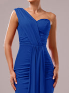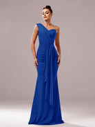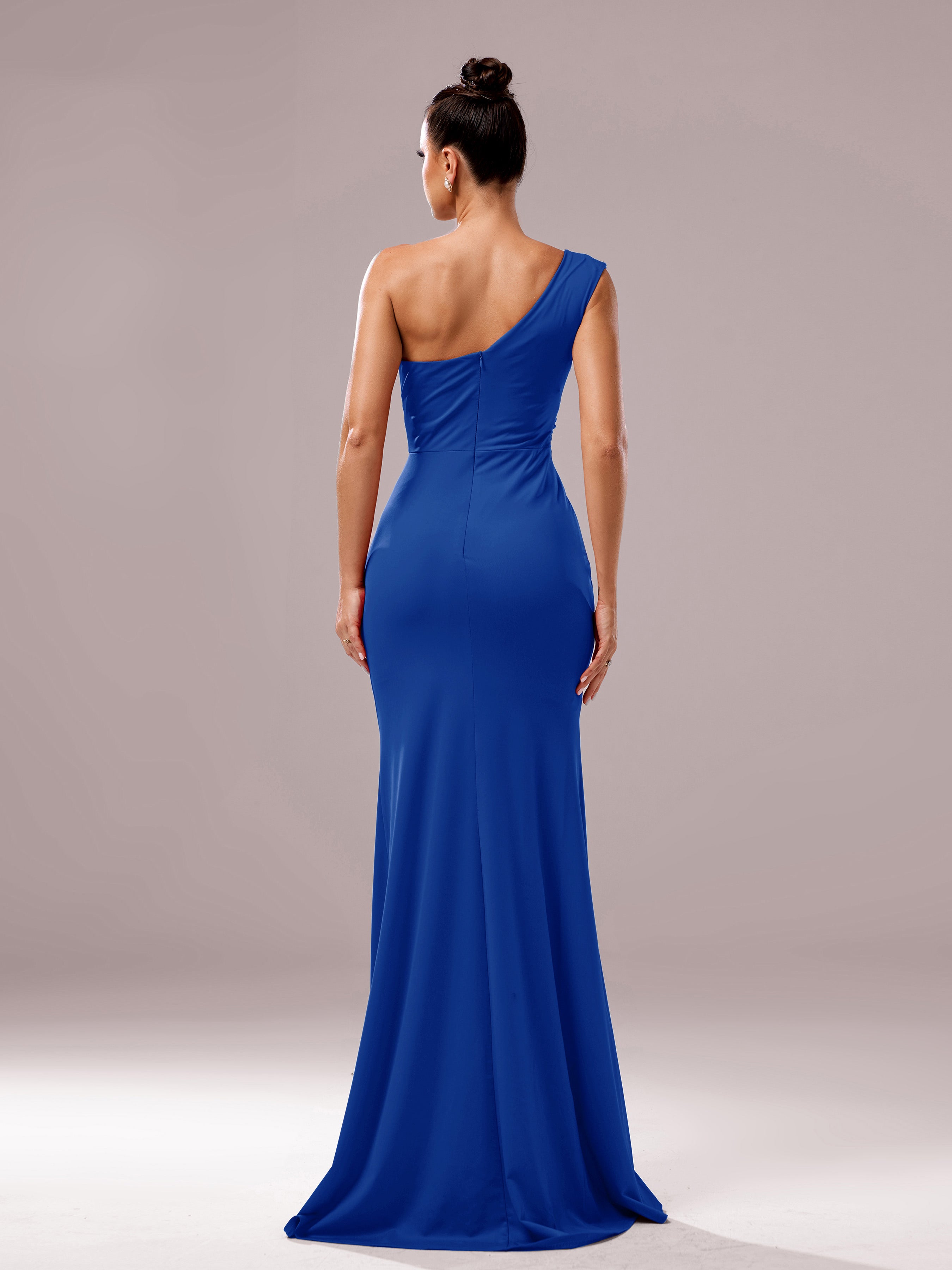 Detalhes: Um ombro, drapeado, costas abertas, plissado