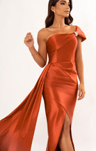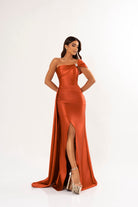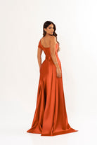 Vestido de festa longo acetinado BRS1FUSC/TERRA
