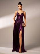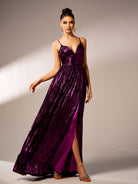 Eleve seu estilo com nosso Vestido de Baile Metálico Spaghetti A-line. Seu design elegante e detalhes metálicos criam um visual luxuoso e sofisticado. A silhueta A-line valoriza cada figura, enquanto as alças finas adicionam um toque de elegância. Perfeito para qualquer ocasião especial, este vestido é essencial para seu guarda-roupa.