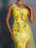 Liberte seu lado feroz e divertido com esse vestido maxi amarelo de um ombro só com fenda! Mostre seu estilo único com essa peça divertida e versátil, perfeita para qualquer ocasião. Com seu design chamativo de um ombro só e uma fenda chique, você será o centro da festa onde quer que vá;